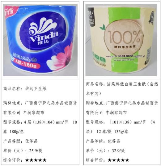 2月6日,在对心相印、维达、清风等品牌的29款手帕纸、卫生纸进行测评后,广西消费者权益保护委员会(以下简称“广西消委会”)对比较试验结果进行公告。
