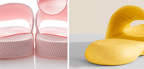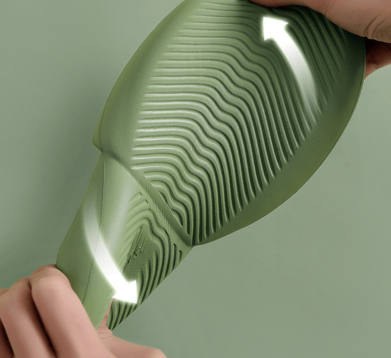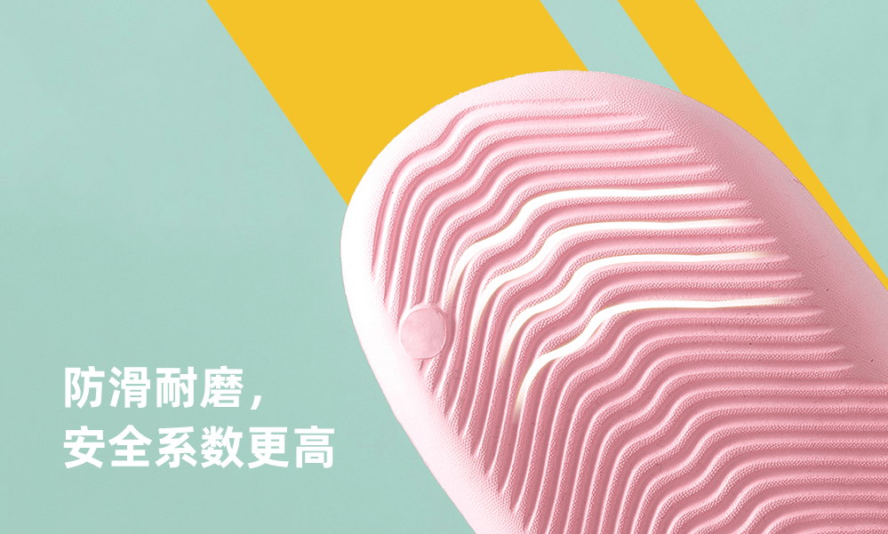 特殊的凹凸波浪纹理设计,相比普通菱形鞋底摩擦力更强,让你在浴室也敢大胆走路。