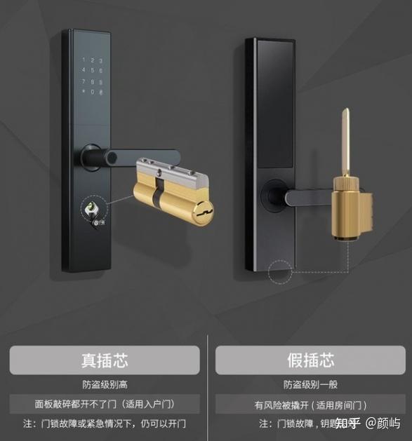 插芯就是锁芯,真假插芯的区别在于是否贯穿锁体,钥匙孔是否一目了然。真的插芯需要孔安装,假的不需要。很多人觉得真假插芯真的没有那么重要,但是个人比较偏向真的东西,因为假插芯一旦面板被撬开,这个锁估计防盗会大打折扣。而真插芯,哪怕面板被撬开,锁的安全并没有被撼动。