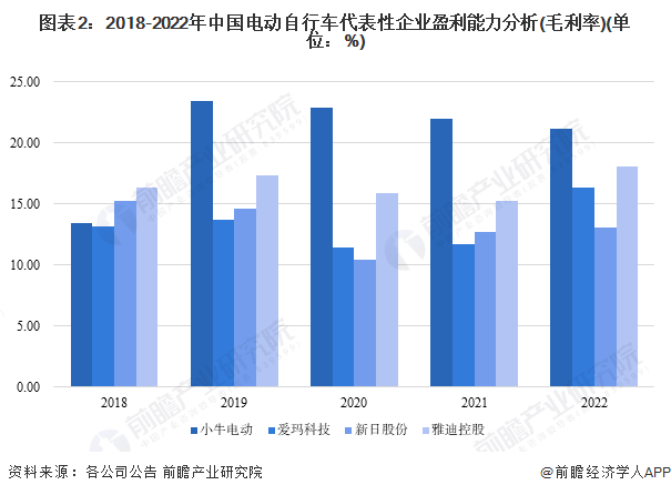 从盈利能力来看,2018-2022年中国电动自行车行业代表性企业整体的销售毛利率均在10%以上,表明电动自行车行业的盈利能力较为一般,并不属于高盈利能力的行业,需要通过提高销售规模以获得高额回报,其中小牛电动在2019-2022年期间整体保持在20%以上,证明企业成本管控能力较强。2022年,小牛、爱玛、新日以及雅迪的销售毛利率分别为21.13%、16.36%、13.04%以及18.08%。