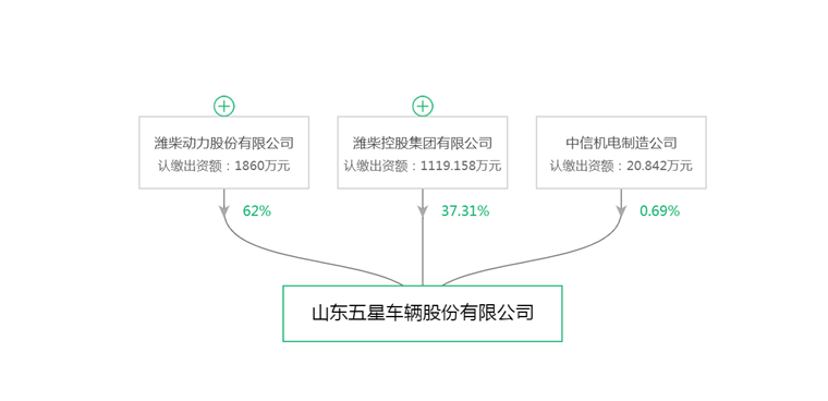 据企查猫股权穿透图显示,潍柴动力股份有限公司是山东五星车辆股份有限公司最大的股东,占比高达62%。