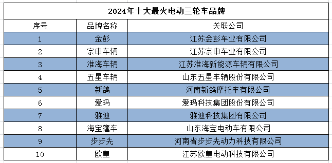 根据品牌信誉、销量、关注指数等数据,2024年最火的十大电动三轮车品牌如下:
