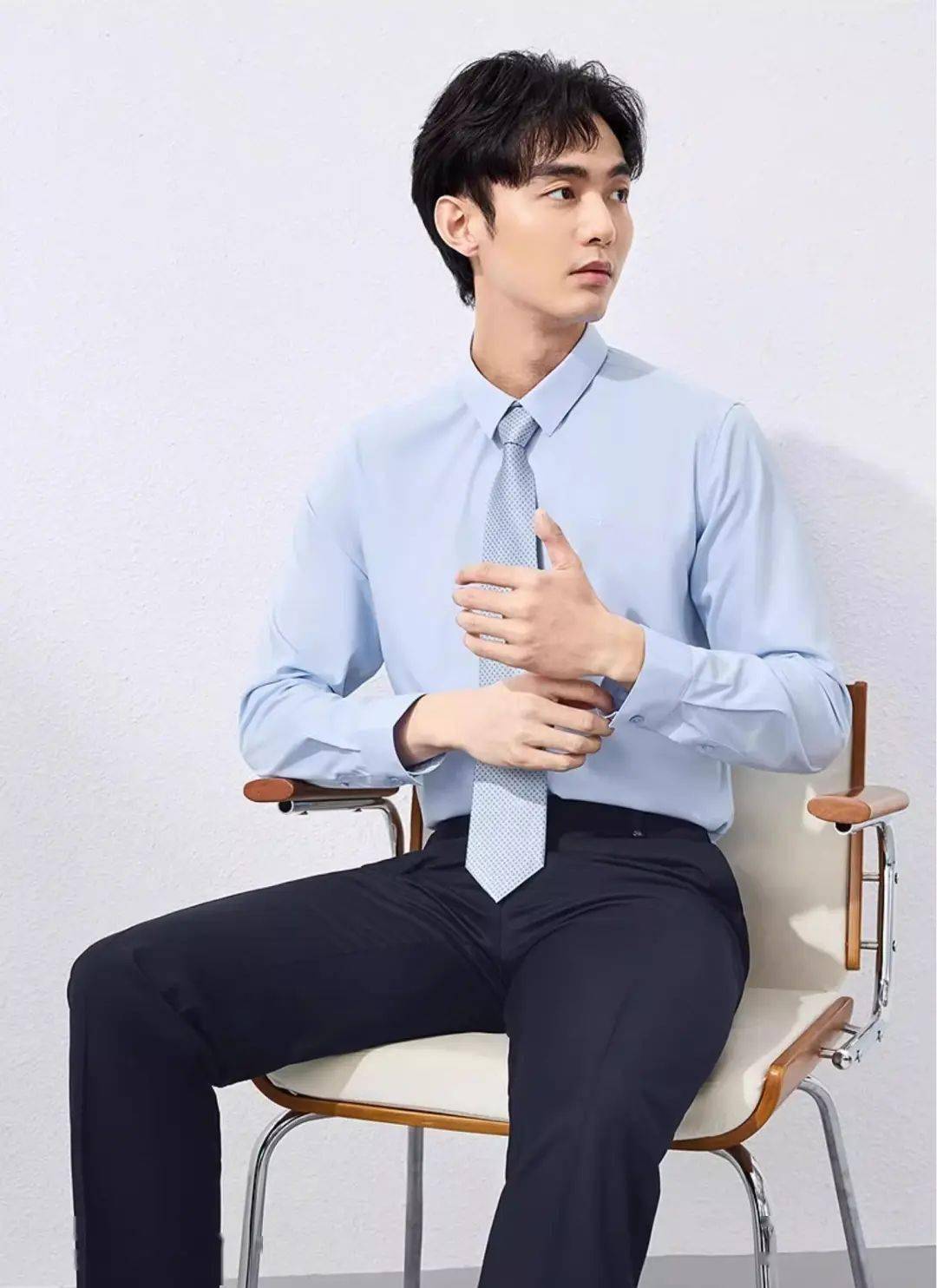 蓝色衬衫给人带来冷静、理智的视觉感受,让人看起来更加沉稳、自信。
