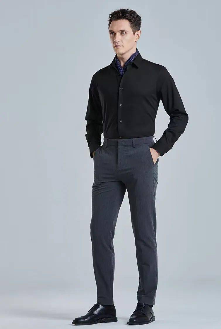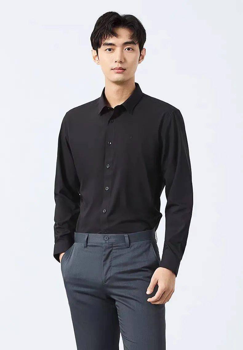 黑色衬衫,稳重、气质百搭,不仅 更耐脏,亦打理,还具有收缩视觉的效果,上身更显瘦。