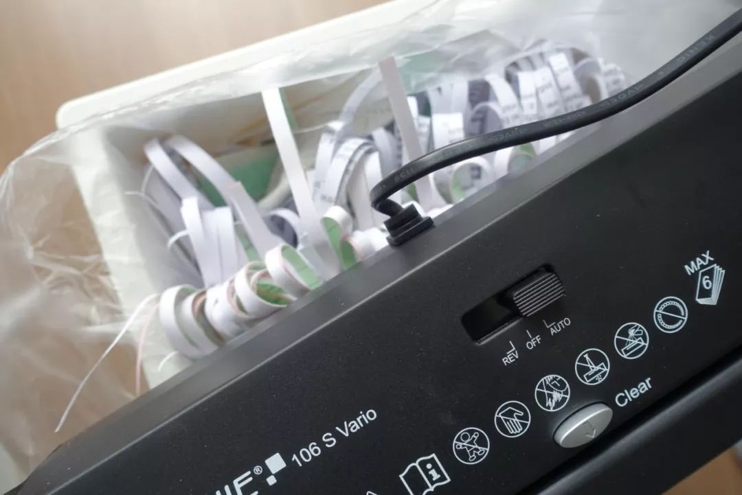 因为现在住的公寓比较小,而且考虑到以后要搬家,就没买大只带垃圾桶的碎纸机,而且买了一个可以直接搁在任何垃圾桶垃圾袋上的碎纸机,可以一次性碎6张纸,也裁的蛮碎,反正对于处理个人信息是绝对绰绰有余了。关键是这货体积小不占地方,也方便以后打包携带,非常实用了,推荐给有需要的朋友们。