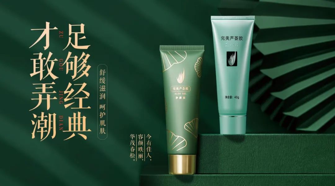 在产品包装上,完美芦荟胶以“春松”为元素,打造了“以国为潮,东方力量”的中国传统文化设计体系。据悉,该设计灵感来自曹植《洛神赋》中的诗词,“翩若惊鸿,婉若游龙。荣曜秋菊,华茂春松”,以此为基础,完美公司打造了一套国潮美妆产品,为品牌增添了既有质感又有情怀的个性,进一步打开了热衷于颜值主义、追求文化价值的新生代消费市场。