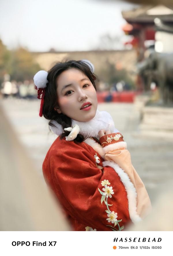 实拍体验:Find X7系列的新一代超光影图像算法在成像方面显得更加生动自然,不仅能很好的还原画面色彩,同时画面影调也显得更加舒适养眼。哪怕是把落日这种强光源带入画面,也依旧能保持人像拥有非常不错的画面质感。下面是两张较大光圈下的成像,有着非常顶尖的虚化效果,发丝部分也有着非常精细的表现。另外哈苏模式又有了更加深度的融合,综合影像效果非常强。
