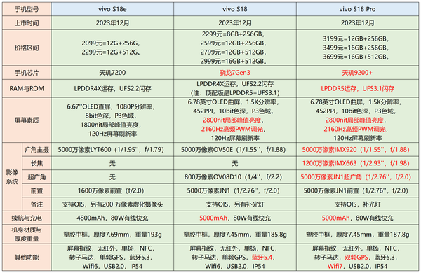 vivo S18系列里推荐度较高的是S18 Pro版,标准版和e版是没有搭配长焦的,并且没有双频GPS功能。运存和闪存规格相比也存在差距。因此这里重点点评Pro版。