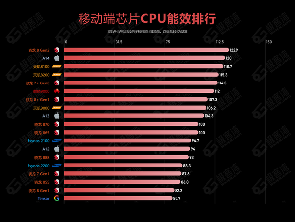 老年人和学生的日常使用不建议低于骁龙778G,但还是尽量优选搭载了天玑8100及以上的手机。如果喜欢玩大型游戏,并且预算有限,选择骁龙8+Gen1、天玑9200基本够用了。如果对流畅的需求比较高,并且预算充足,可以争取骁龙8+Gen1及以上为佳,这个性能的芯片可以满足很多方面的需求。芯片排名可以参考下面的极客湾评测,虽然这个排名的计算规则与权重未必就是完美的,但基本是能大致反映出芯片整体的性能表现。对于普通购机用户来说,作为参考是没有问题的。