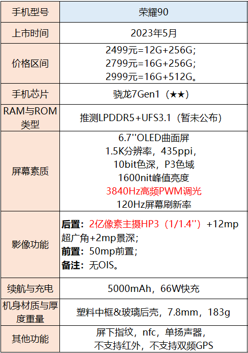 性能三件套是骁龙8 Gen3芯片、LPDDR5X内存、UFS3.1闪存,性能强悍。1/1.3英寸的大底主摄OV50H?、鹰眼抓拍、支持2.5倍光学变焦,整体影像功能尚可。拥有5450mAh的大容量电池,同时续航能力也是前排水平。支持4320Hz的超高频PWM调光,能减少暗光下的眼睛疲劳。不足: