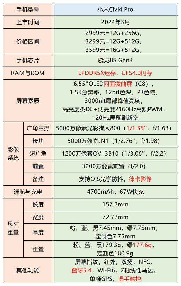 扩展阅读:Xiaomi Civi 4 Pro 正式发布 2999 元起,该手机有哪些亮点?