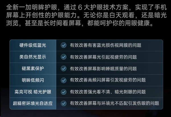 目前有两家手机厂商在这方面投入比较多、并且各方面都做的很全面。分别是荣耀绿洲护眼屏,和OPPO(一加)明眸护眼屏。