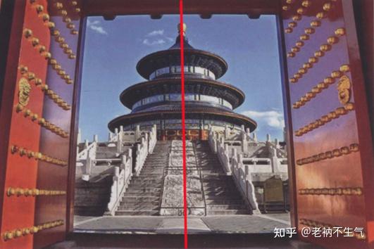 对称构图一般是横轴或数轴对称,适用于拍摄对称感比较强烈的建筑,运用得当可以拍出恢弘的气势。但是过于追求对称拍出的照片则会显得呆板。
