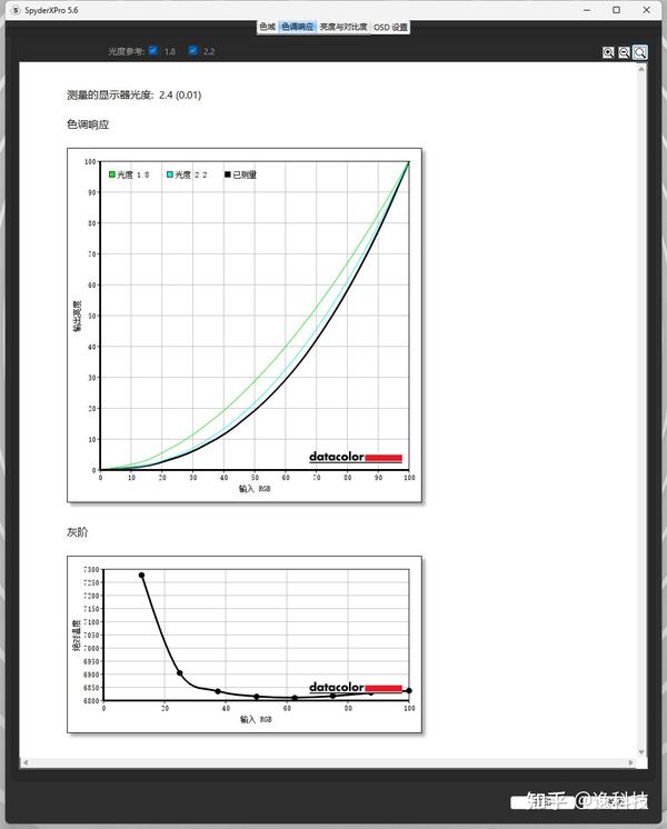 在色调响应的测试中,黑色是已测量的值和光度2.2标准接近。