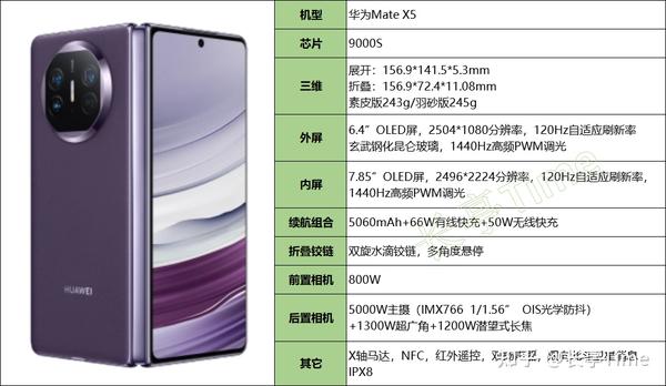 搭载9000S芯片,性能表现和体验还不错,且支持5G网速内外两块屏幕素质都蛮高,且都支持120Hz自适应刷新率、1440Hz高频PWM调光,其中典藏版的屏幕亮度表现极佳;后置搭载IMX766主摄+1300W超广角+1200W潜望式长焦,是目前拍照最强的折叠屏机型之一;搭载5060mAh电池+66W有线快充+50W无线快充的组合,是目前电池容量最大的折叠屏机型,续航和充电体验都不错;支持多角度悬停,玩法蛮多;在兼顾以上配置的前提下,仍能做到243g重量、5.3mm展开厚度、11.08折叠厚度的轻薄机身,整机完成度极高。不足:
