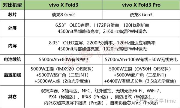 内外屏均不支持类DC调光或高频PWM调光,低亮度护眼体验一般;性能释放表现略一般。vivo X Fold3、X Fold3 Provivo X Fold3:12+256G,6999元/16+512G,7999元vivo X Fold3 Pro:16+512G,9999元/16G+1T,10999元
