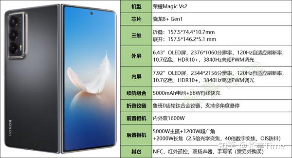 与荣耀Magic V2相比,两款机型采用同套模具、且配置也比较相近,相对而言,Magic V2在性能、影像两个方面规格更高(且搭载C1自研射频增强芯片),而Magic Vs2则胜在价格更便宜(起步价便宜2000元,同16+512G版本便宜了2300元)。