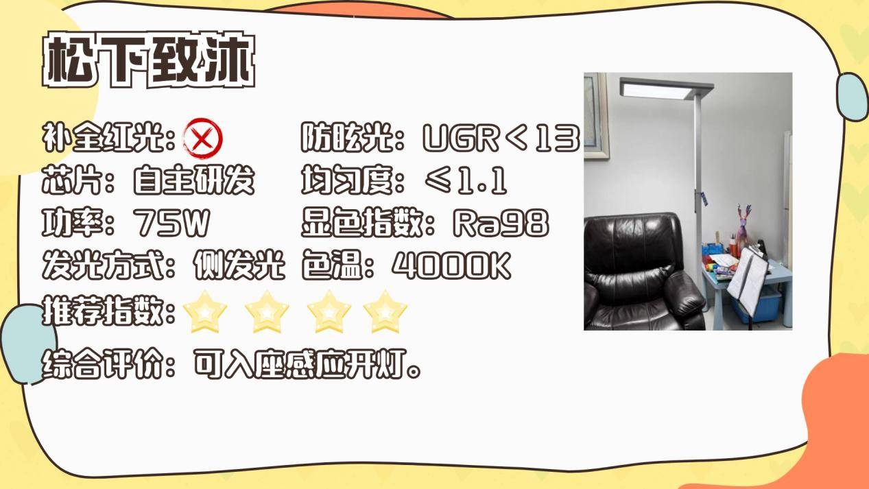 护眼效果:松下采用上下发光的设计,使光线分布更均匀,减少局部过亮或过暗的情况,从而降低眼睛疲劳感。此外,一体式发光结构避免了传统台灯容易产生的重影问题,即使在灯光下长时间写作业,视觉体验也更加舒适,但要注意的是这款护眼灯的蓝光峰值在1左右,可能会带来一定的蓝光伤害。