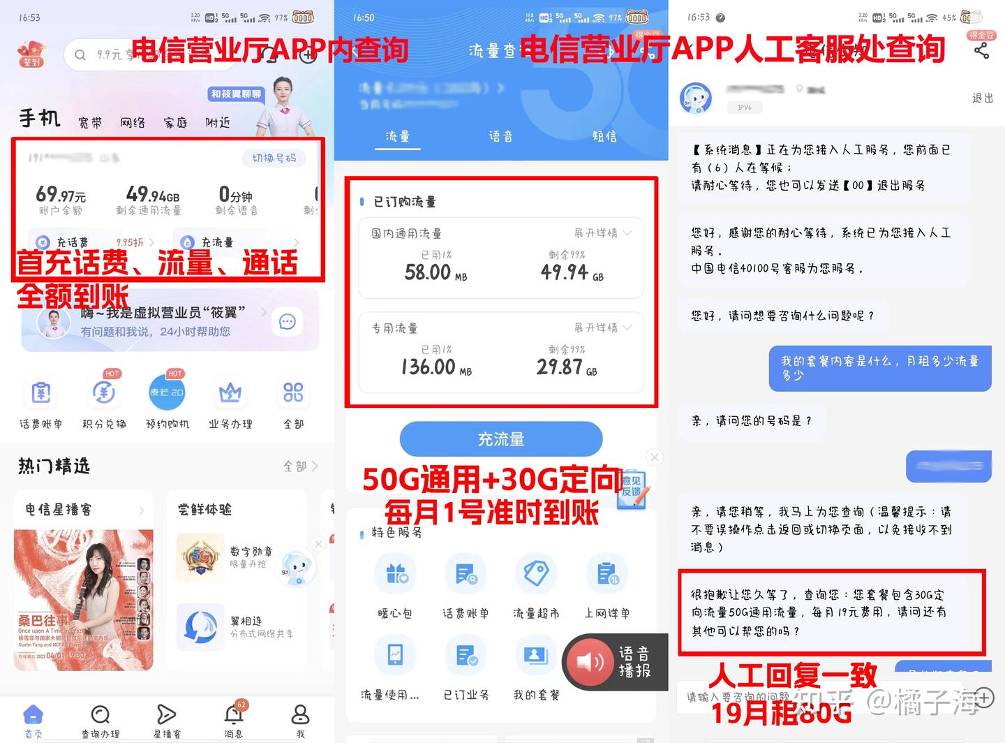 电信营业厅APP查询截图: