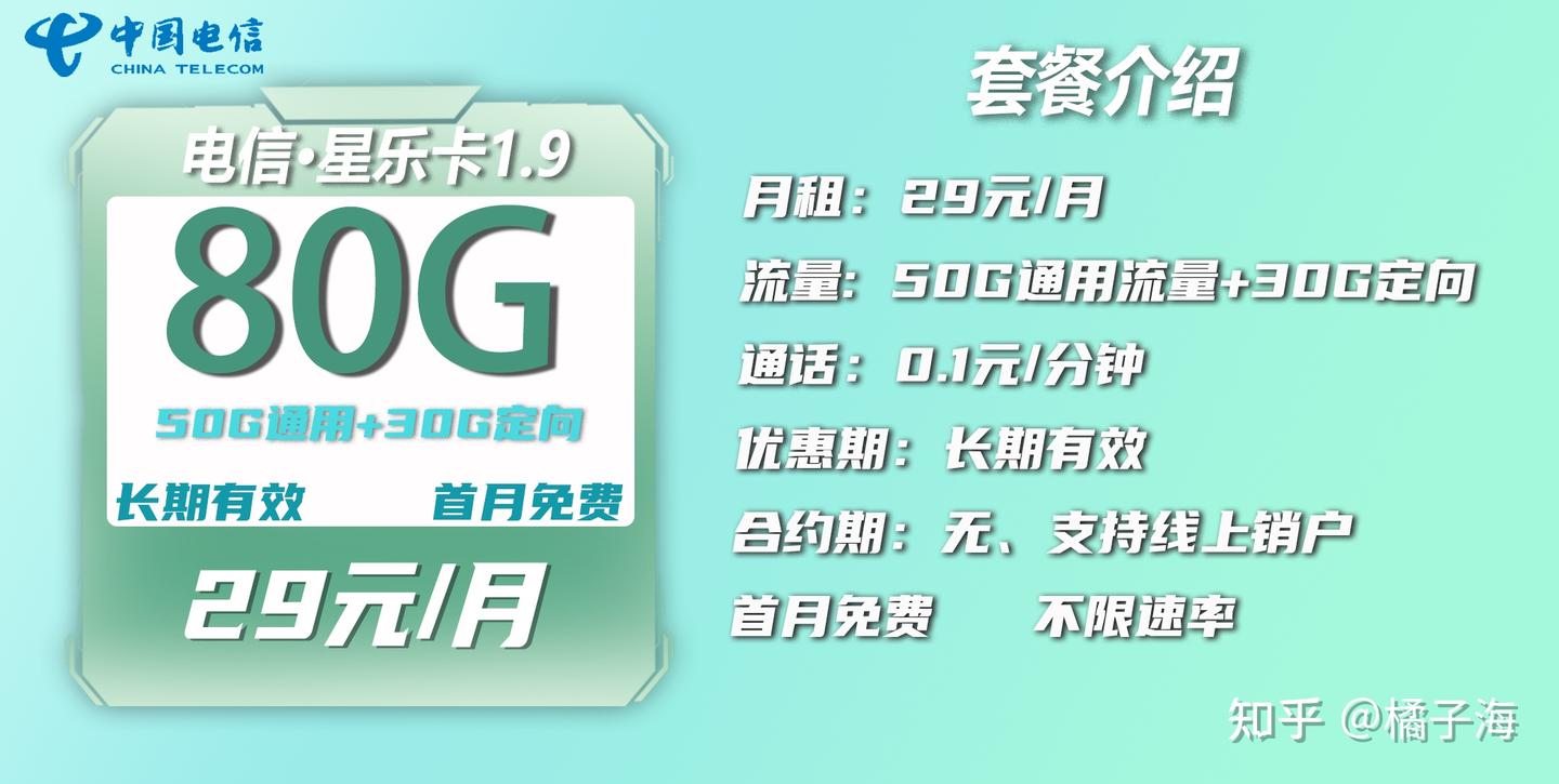 https://xg.zhihu.com/plugin/584ec6c591a58ebf1aee2340de2f453c?BIZ=ECOMMERCExg.zhihu.com/plugin/584ec6c591a58ebf1aee2340de2f453c?BIZ=ECOMMERCE电信星乐卡1.9-长期有效套餐:每月29月租50G通用流量+30G定向流量+0.1/分钟通话(畅享速率/通过率高)