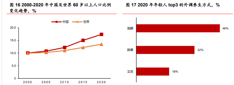根据益普索调查,年轻人 top3 的外调养生方式分别为泡脚、按摩和艾灸。