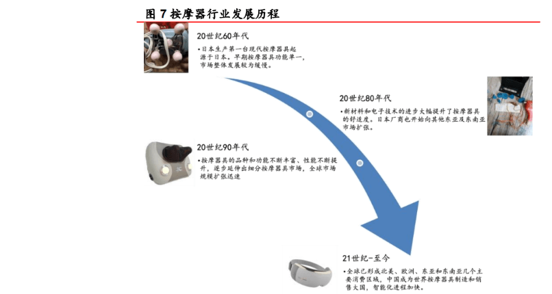 现代按摩器具源于20世纪60年代的日本,21世纪后全球按摩器产业链转移至中国。