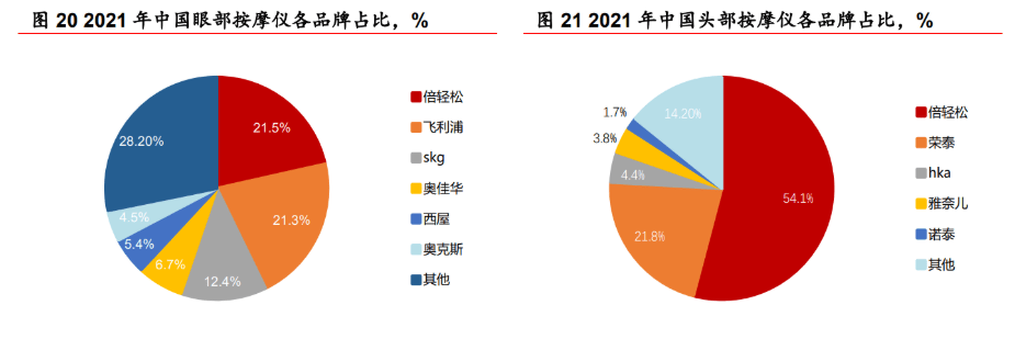 根据淘数据显示,2021年公司线上眼部和头部按摩器市场占比分别为21.5%和54.1%,市占 率均排名第一。