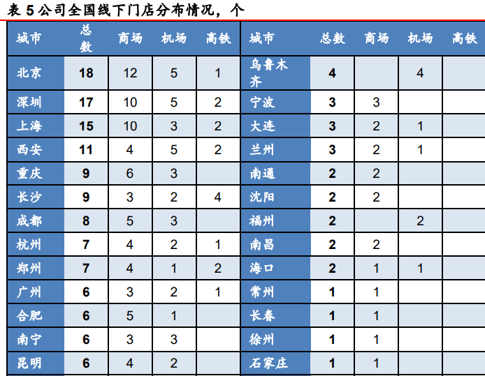 公司逐步向一二线城市的高端购物中心转移,在机场,大型商场等商旅人士密集区域建立商圈,增加了品牌在目标客户中的曝光度,更好带动公司整体毛利率提升。