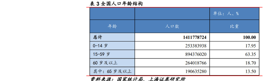 从老龄化程度来看,根据第七次人口普查数据,中国 60 岁及以上老龄人口约为 2.64 亿人,占人口总比例的 18.7%,中国已成为世界老龄人口最多的国家。老龄化程度的加深催生了专为老年人服务的产业。
