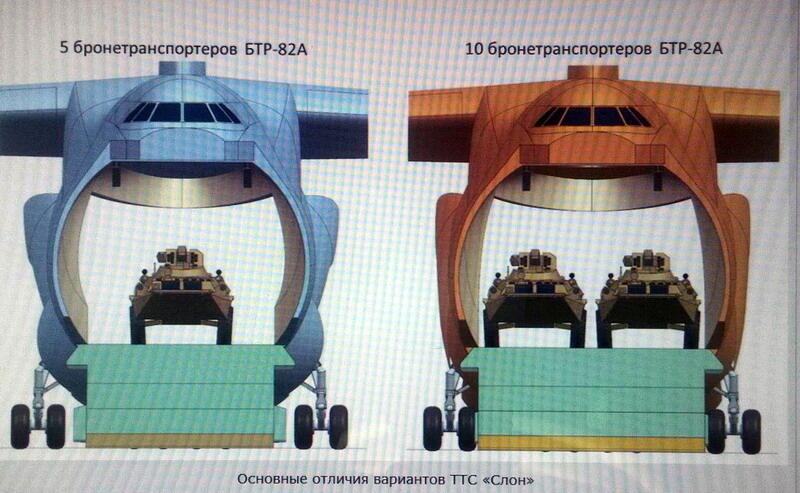TTS“大象”项目最早曝光于2017年7月的莫斯科航展,该机被定位于安-124后继机,是一种超大型运输机。TsAGI透露“大象”民用型最大载重150吨,此时航程7000公里,军用型最大载重量180吨,此时航程4900公里。