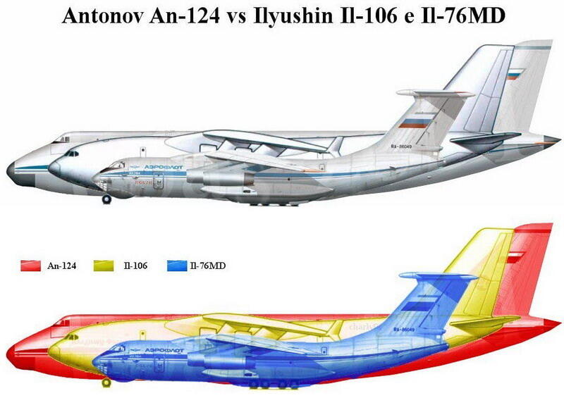 安-124、伊尔-106X、伊尔-76MD的尺寸对比