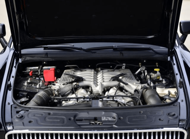 这台车后期推出了民用版车型,搭载4.4T双涡轮增压V8纵置发动机,最大功率598马力,匹配KATE R932 9速自动变速箱,百公里加速在6秒以内,搭载四驱、液压助力转向系统,悬挂为多连杆独立后悬挂+空气悬挂。