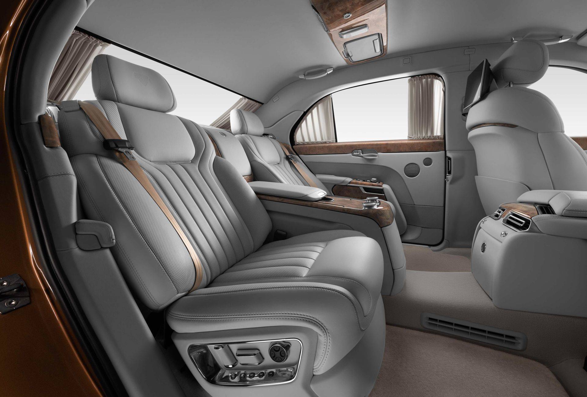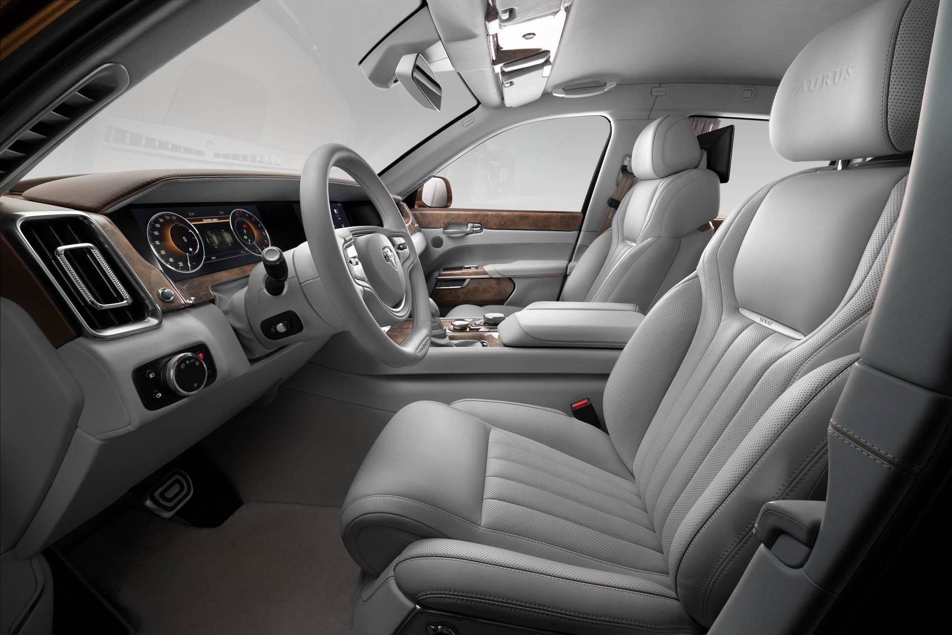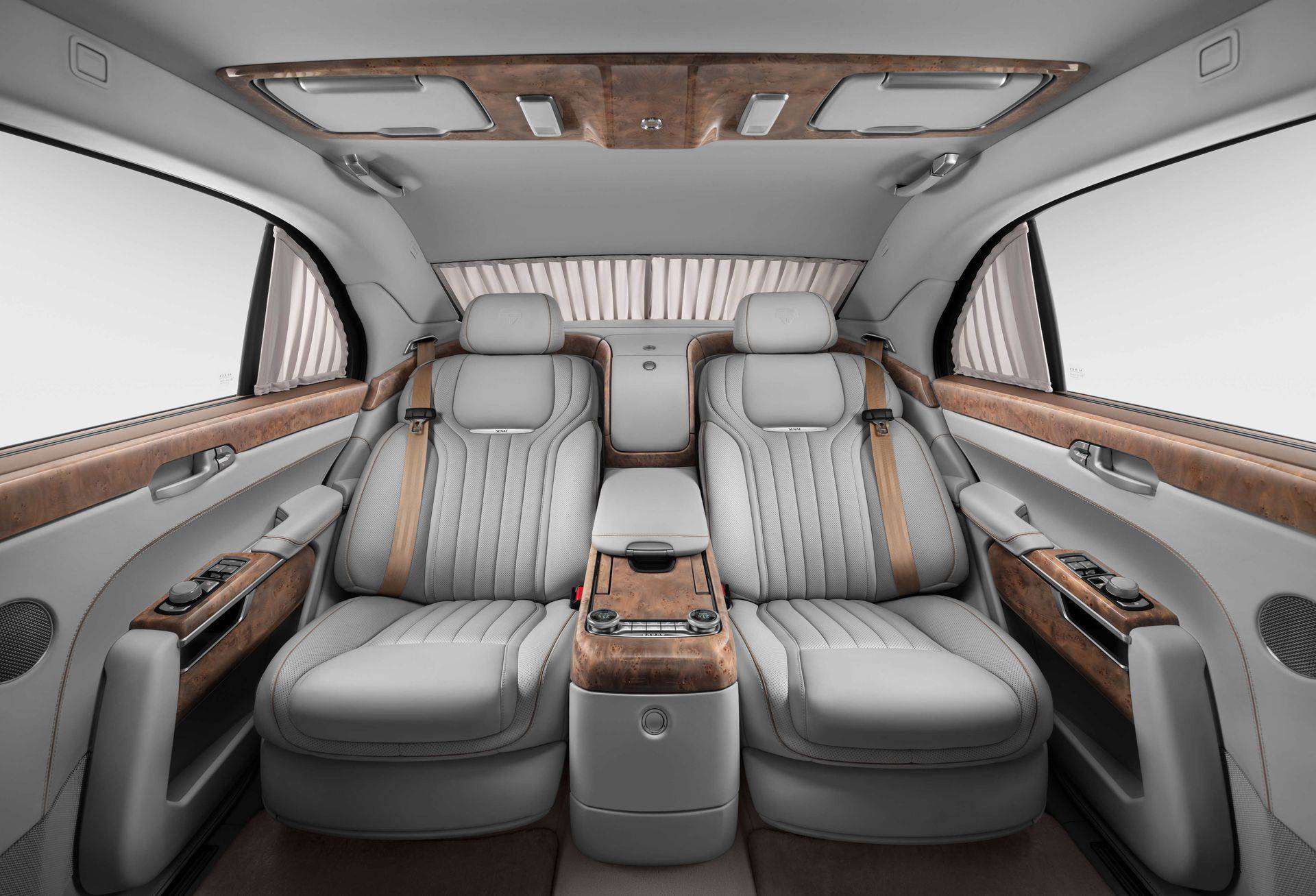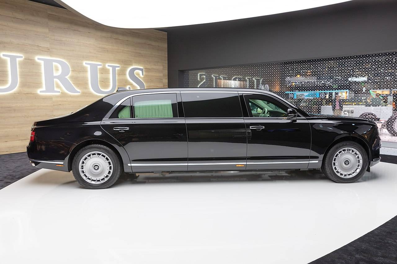 尺寸上,这款加长版本长宽高分别为6630mm/2020mm/1695mm,轴距达到了4300mm,整个侧面线条视觉感相对比较流畅。Aurus Senat采用了一套大面积金属光面的轮圈,显得非常稳重大气,劳斯莱斯、宾利、梅赛德斯-迈巴赫旗下的不少车型都采用过类似的设计。
