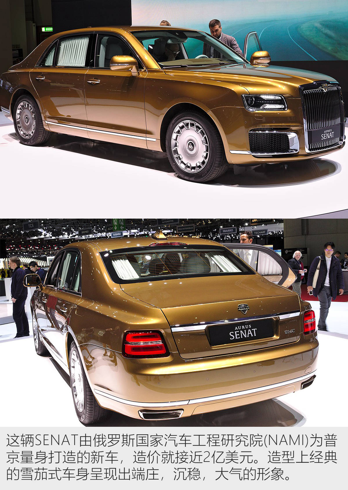 这辆车是由俄罗斯国家汽车工程研究院(NAMI)为普京量身打造的新车,这辆车作为普京的座驾价值不菲,单是造价就接近2亿美元,甚至Kortezh项目打造了一个统一模块化平台(Cortege),属于前置后驱和四驱系统并支持介入混动模块。SENAT搭载6.6T双涡轮增压V12发动机,最大功率850马力、最大扭矩1320牛·米,匹配9AT变速箱。据说保时捷和博世工程公司还参与了发动机的研发和调校工作,并且整车具备防弹功能。当然,这辆车安全性能很高,普京走到哪里都会带着它。