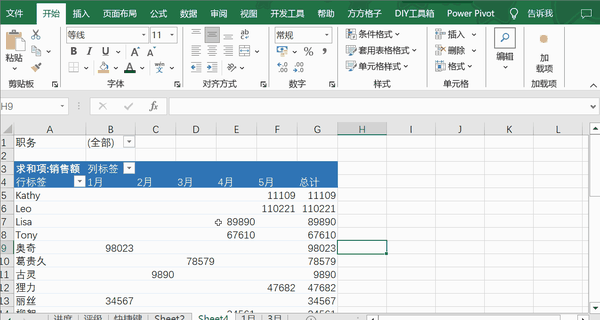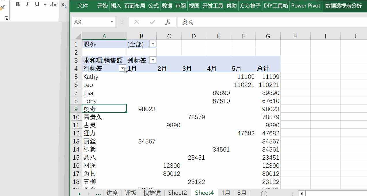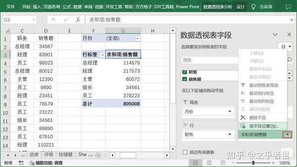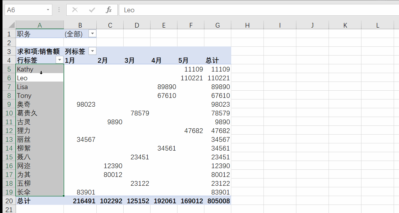 1.1.6确定你要筛选的内容,我们可以看到这里例表,如果想要按月筛选出对应职务的销售额占比。