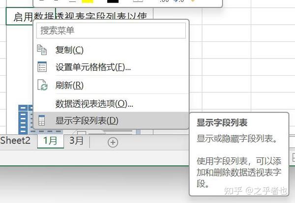 1.1.5你可以将光标放在数据透视表区域,点击右键,显示或是隐藏数据透视表字段。