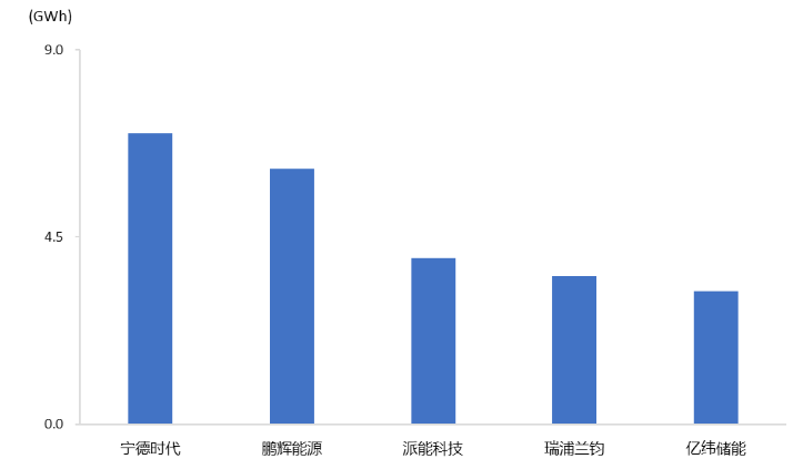 2022年度,全球市场中,家储电池(不含便携式储能)出货量排名前五位的中国储能技术提供商,依次为: 宁德时代、鹏辉能源、派能科技、瑞浦兰钧和亿纬储能。