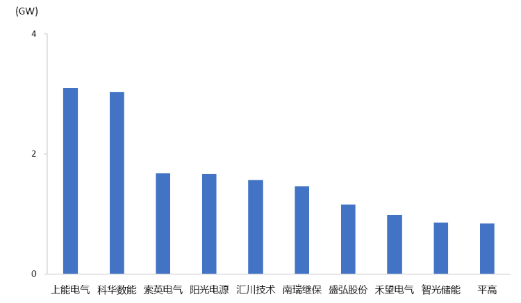2022年度,全球市场中,储能PCS出货量排名前十位的中国储能PCS提供商,依次为: 阳光电源、科华数能、上能电气、古瑞瓦特、盛弘股份、南瑞继保、固德威、索英电气、汇川技术和首航新能源。