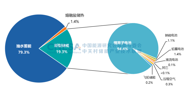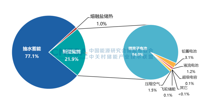 无论从中国还是全球来看,锂离子电池在电化学储能产业中依然优势明显,其所占据的主导地位非常明显。 年增长率超过85%,其在新型储能中的累计装机占比与2021年同期相比上升3.5个百分点。