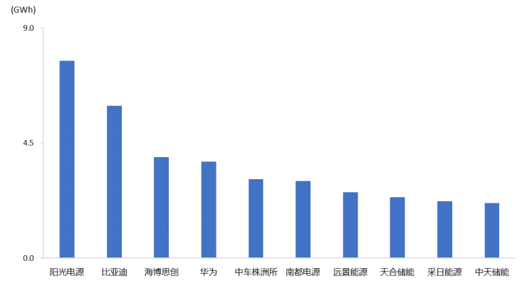 2022年度,全球市场中,储能电池出货量排名前十位的中国储能技术提供商,依次为: 宁德时代、比亚迪、亿纬储能、瑞浦兰钧、鹏辉能源、海辰储能、派能科技、远景动力、南都电源和国轩高科。