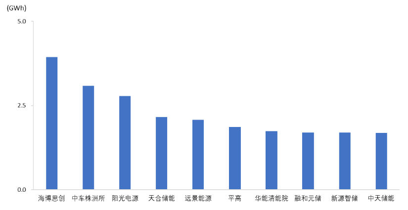2022年度,国内市场中,储能系统出货量排名前十位的储能系统集成商,依次为: 海博思创、中车株洲所、阳光电源、天合储能、远景能源、平高、华能清能院、融和元储、新源智储和智储和中天储能。