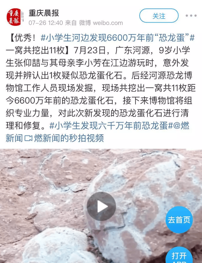 广东河源,有一个9岁的小哥哥张仰喆,发现了6600万年前的恐龙化石。