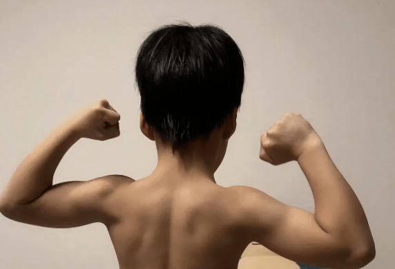 所以小小年纪的吴所谓,已经像他爸爸一样,锻炼出了一身小肌肉。
