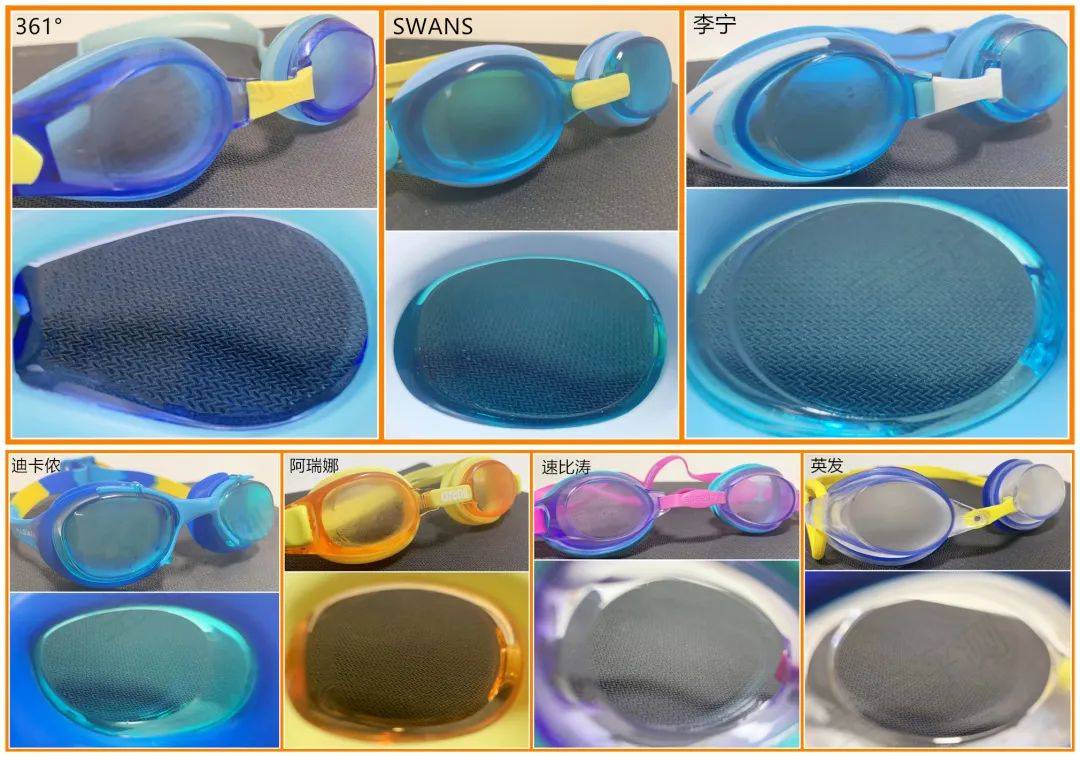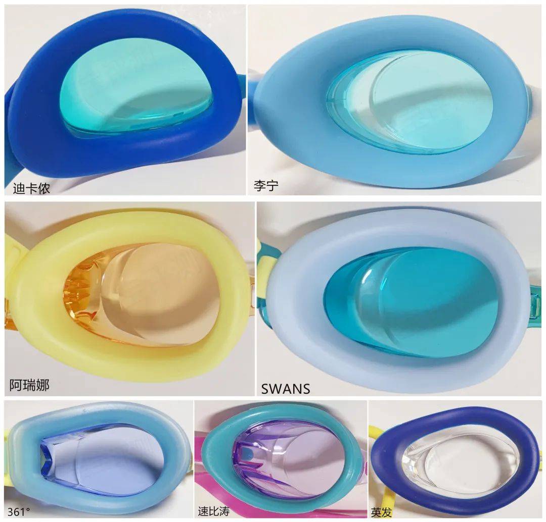 其中,迪卡侬、李宁,硅胶镜圈较为宽大厚实,能够覆盖眼周的面积也更多一些,因而镜圈的舒适度更佳。阿瑞娜和SWANS也不错。