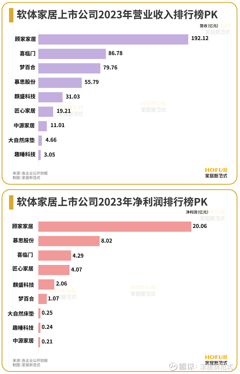 这两大行业,历来是与大众消费者接触最为紧密的两大行业,两者的争霸由来已久。先看软体家居上市公司去年的业绩情况: