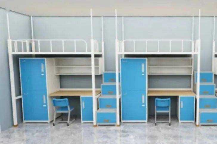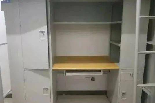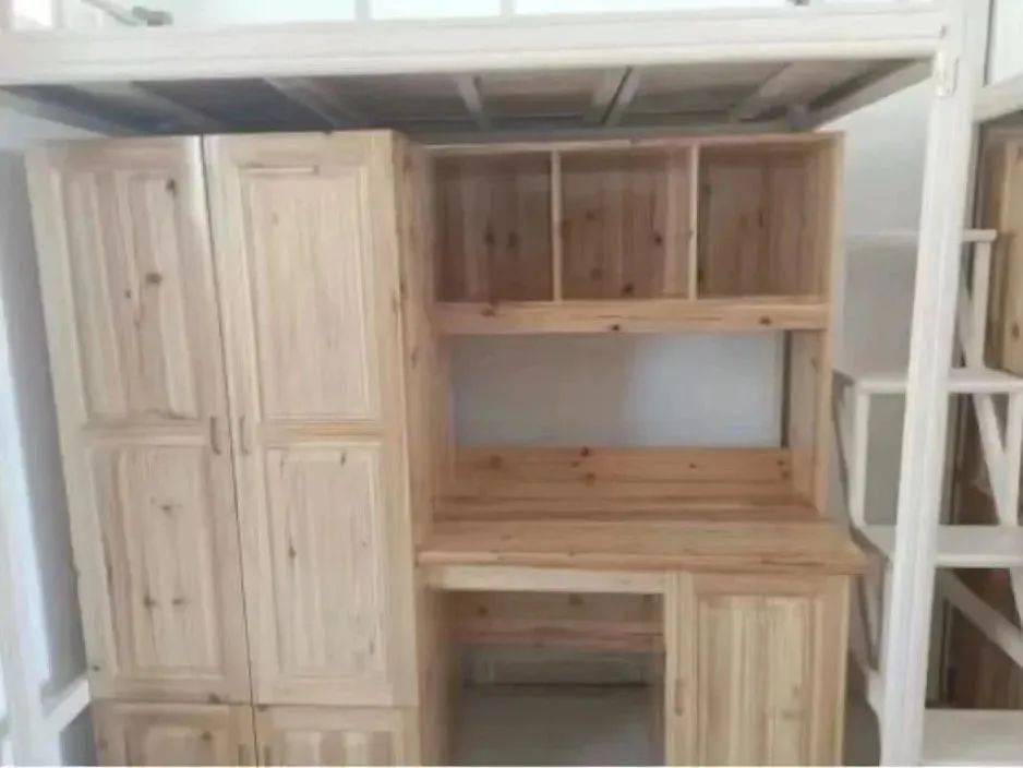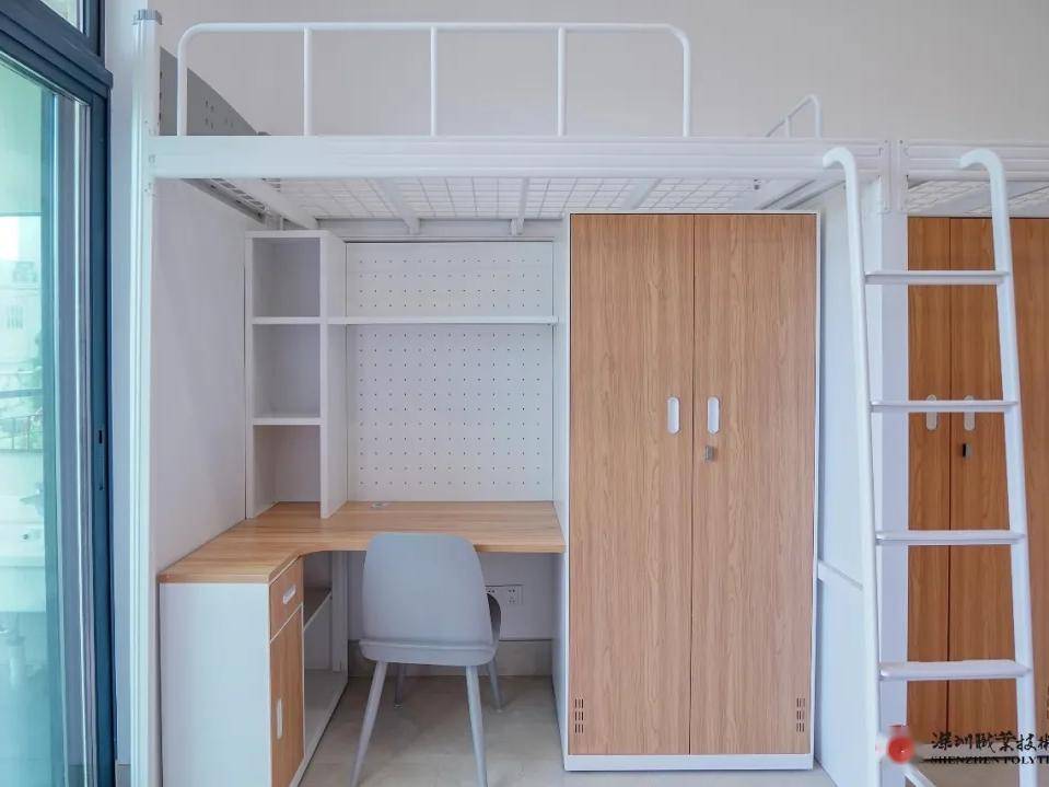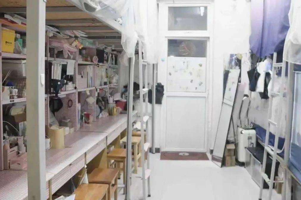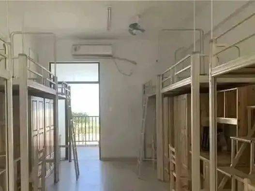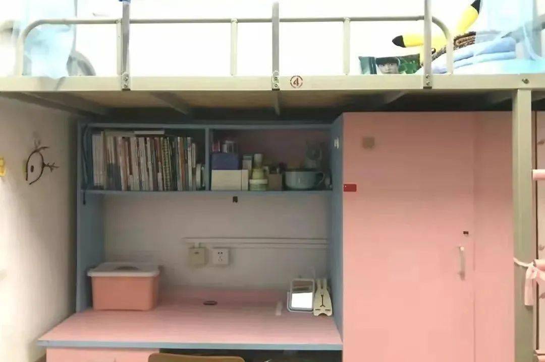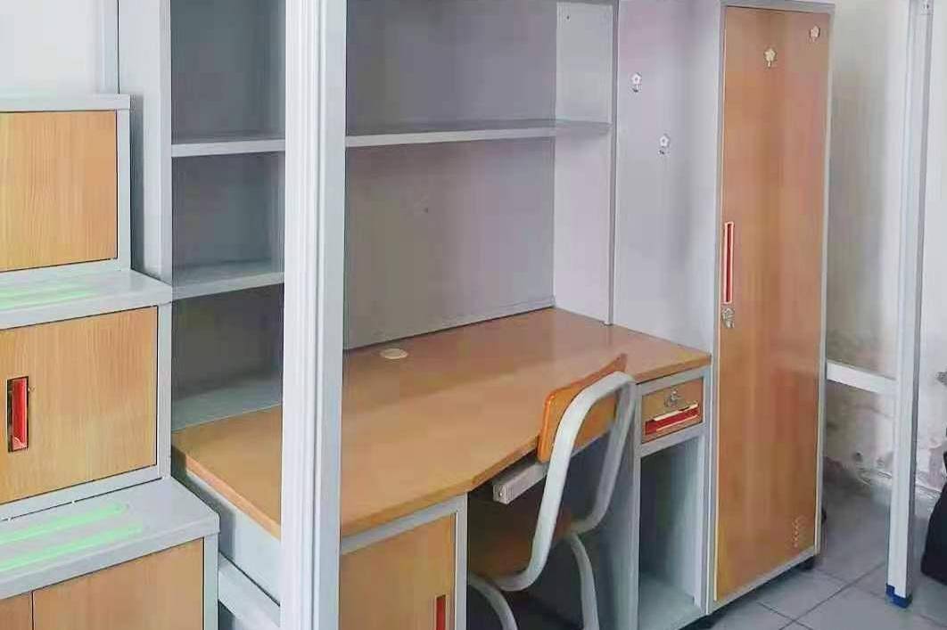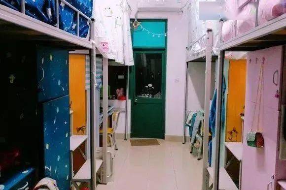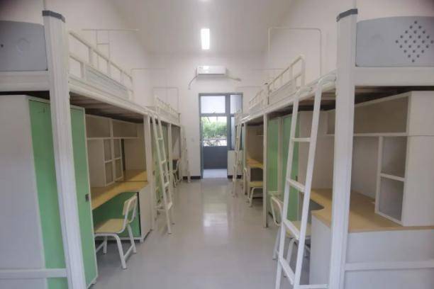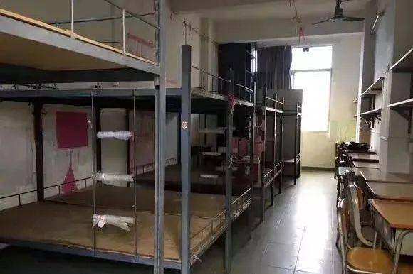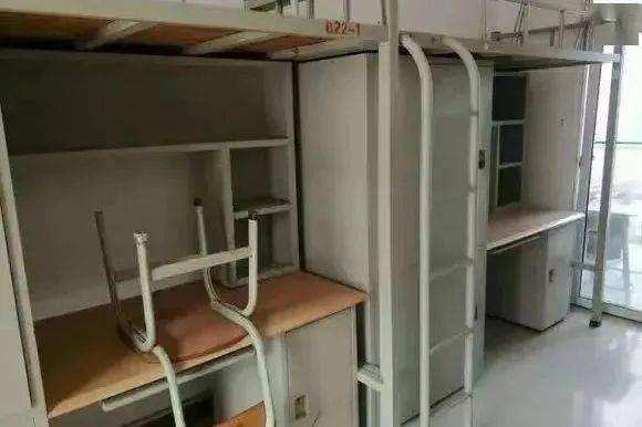 宿舍由学校统一分配,6人间5人住,都是上床下桌!