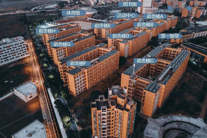 学校有5个宿舍区,分别为A区(竹苑)、B区(榕苑)、C区(桂苑)、D区(桃苑)和新宿舍。