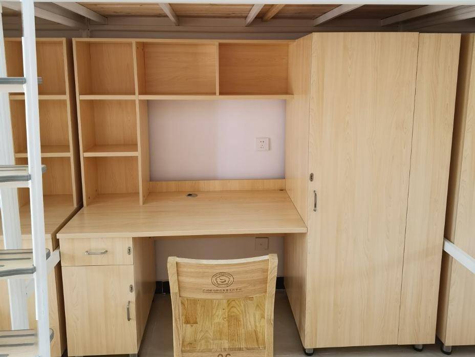 学校的宿舍有两种,4人间和6人间,4人间为上床下桌,6人间为上床下铺。