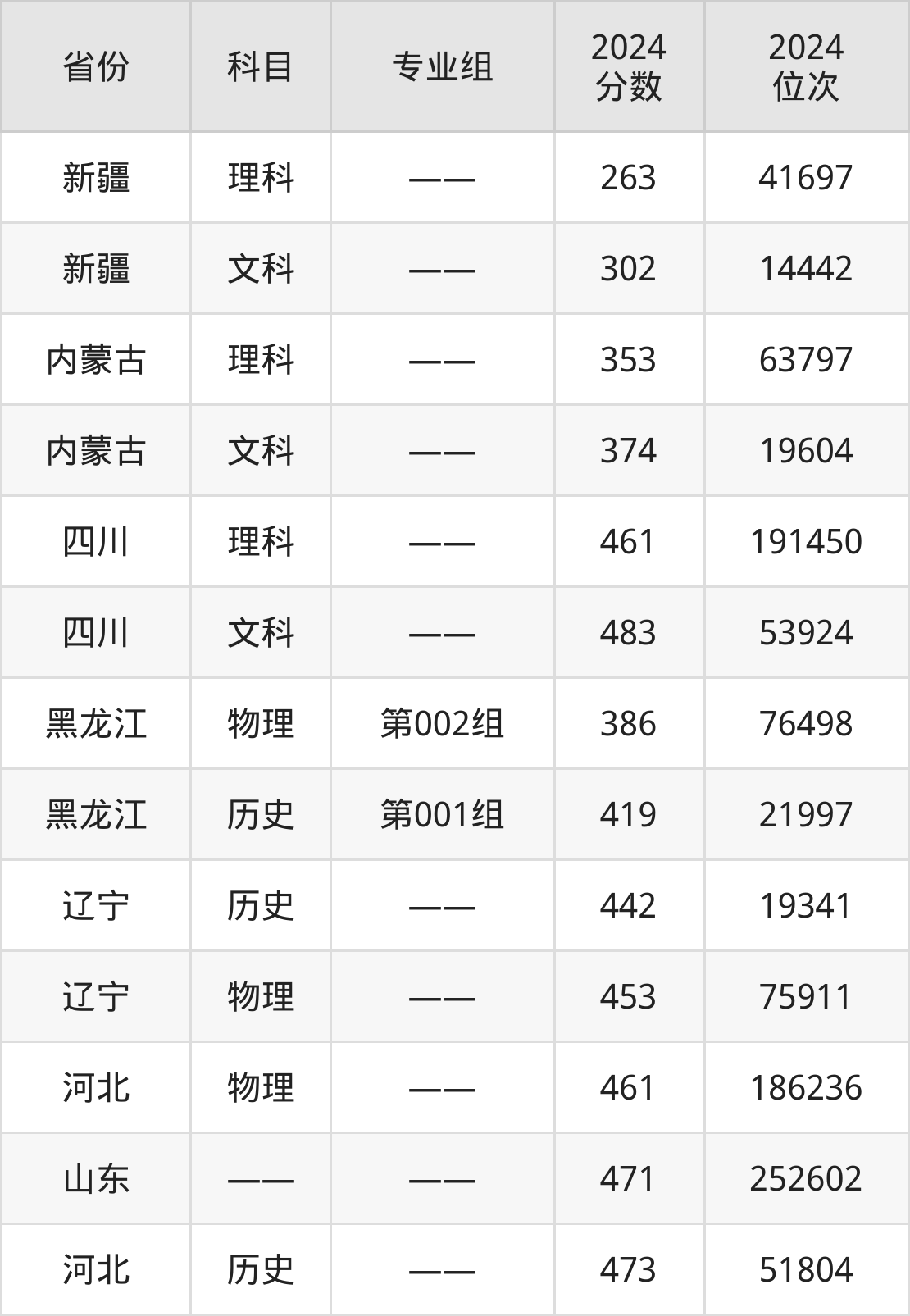 3+3地区:2024年白城医学高等专科学校录取最低分是471分(山东),对应的位次排名是252602名。