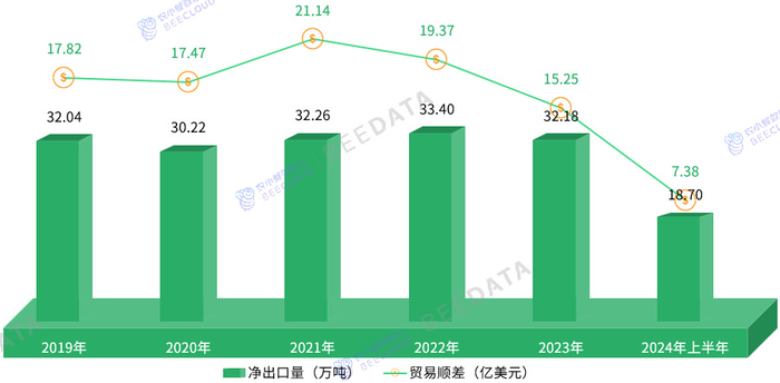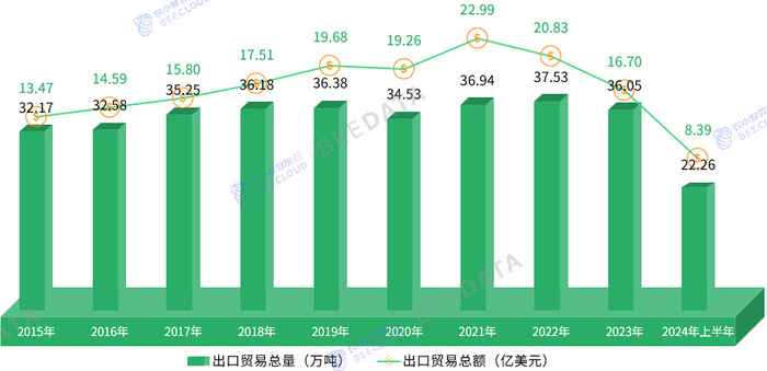 (数据来源:中国海关 制图:农小蜂 abeedata.com)